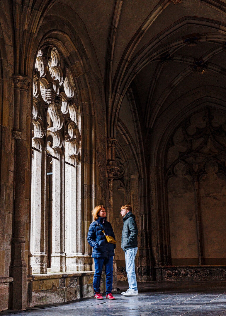 Nadat we weer lekker opgewarmd en gevuld zijn, gaan we als eerste naar de Mariaplaats. Een mooi hofje met Romaanse bogen en een klein tuintje. Er wordt gespeeld met double exposure en ik zie verrassende foto's.